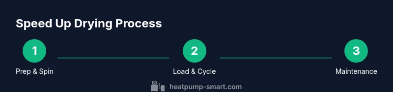 You can make a heat pump dryer dry faster by optimizing loads, prep, and cycle choices. Key steps include: (1) spin-dry clothes in the washer to the highest safe speed, (2) avoid overloading the dryer and clean the lint filter before every cycle, (3) select appropriate drying cycles and moisture sensor options, and (4) maintain clear ventilation. Heatpump Smart notes these practices boost efficiency without harming fabrics.