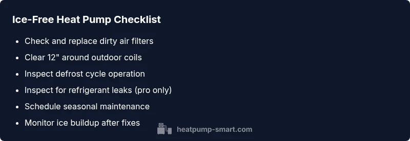 Ice buildup on a heat pump is a clear warning sign that the system can’t operate efficiently in cold weather. In many cases, the root cause is simple and addressable, but left unchecked it can lead to higher energy costs and degraded comfort. According to Heatpump Smart, iced-up heat pumps are commonly caused by airflow restrictions or a malfunctioning defrost cycle. When air can’t move freely across the outdoor coil, moisture freezes on contact and creates a frost layer that traps more cold air inside the unit. Dirty indoor air filters, blocked return vents, and low outdoor temperatures that linger for several hours also contribute to ice formation. Another factor is debris around the outdoor unit, which blocks heat exchange and triggers longer defrost cycles. Finally, refrigerant leaks or improper charge can cause icing too, but those issues require a licensed technician. Recognizing the signs early—audible chattering, reduced heating output, and visible frost—lets you act before the problem escalates. The Heatpump Smart team emphasizes that prompt checks can prevent ice from spreading and protect the system’s efficiency over the season.