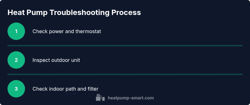 A structured diagnostic approach helps you locate the fault quickly and safely. Start by confirming basic power and control signals, then verify airflow paths and sensor readings. Keep a written log of observations and readings so you can share them with an HVAC professional if needed. In this guide, you’ll find a step-by-step method that covers common faults without opening dangerous enclosures or handling refrigerants. By following a repeatable process, you’ll build confidence and reduce the chance of overlooking a simple misconfiguration. “How to get heat pump to work” becomes a repeatable routine rather than a single-shot gamble. The Heatpump Smart team emphasizes sticking to safe checks first and saving complex diagnostics for a licensed technician if the issue persists.