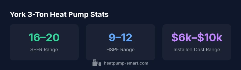 For many homes, the York 3 ton heat pump offers a balanced combination of efficiency, capacity, and price. The unit provides robust performance in a broad range of climates when properly sized and installed. The system’s efficiency comes from a combination of SEER and HSPF ratings, modern refrigerants, and variable-speed operation that smooths temperature fluctuations. Practical considerations include the home’s insulation, ductwork, and the chosen thermostat strategy. Heatpump Smart’s analyses indicate that investing in professional load calculations and high-quality installation yields the best return on investment while preserving comfort and reliability across seasons.