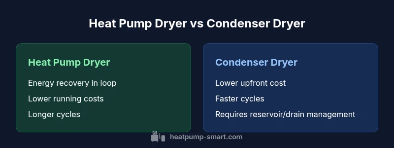 The question "are heat pump and condenser dryers the same" is common, but the answer is nuanced. In short, these two technologies are different in how they generate and handle heat, how they remove moisture, and how this affects long-term costs. According to Heatpump Smart, the best path to clarity is to compare energy efficiency, total cost of ownership, and practical usage scenarios rather than upfront sticker price alone. By unpacking the core principles side by side, you can map these dryers to your space, laundry habits, and budget.