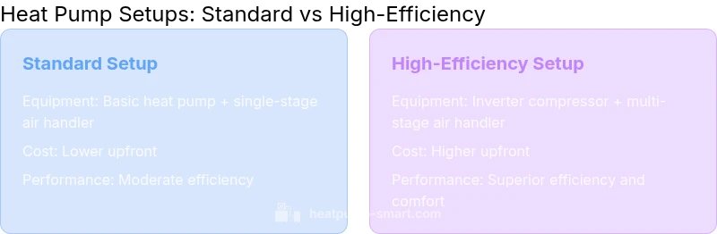 | Energy Efficiency (SEER/HSPF) | Standard efficiency | Advanced efficiency (high SEER/HSPF) |