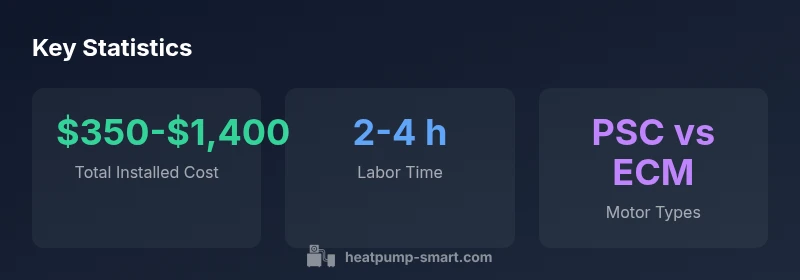According to Heatpump Smart, the heat pump fan motor replacement cost varies with motor type, horsepower, accessibility, and local labor rates. The installed price typically ranges from about $350 to $1,400. The lower end covers standard PSC motors with straightforward access, while the upper end accounts for ECM or premium motors and challenging installations. Heatpump Smart Analysis, 2026, highlights that labor time and compatibility with control boards are major price drivers. When you face a replacement, you should expect the cost to reflect not only the motor itself but also the time technicians spend on diagnosing the problem and ensuring proper integration with your heat pump’s controls. The more complex the wiring and sensor checks, the more likely the price will lean toward the higher end of the spectrum.