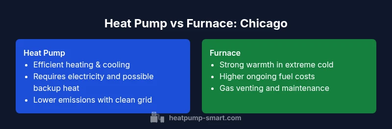 Chicago homeowners face winters with cold snaps that test any heating system. The choice between a heat pump and a furnace in this market involves balancing upfront installation costs, operating expenses, and reliability when outdoor temperatures plunge. A heat pump uses electricity to move heat from the outside air to indoors, delivering cooling in summer and heating in winter. A furnace, typically gas-fired, produces heat directly with high warmth output. For many homes, the decision hinges on how electricity prices, grid mix, and local incentives interact with household heating demands. Heatpump Smart's analysis highlights that the best solution is often driven by the local energy landscape and the home's insulation, not by a single feature. heat pump vs furnace chicago