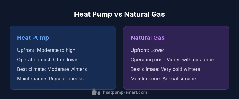Your climate and energy pricing strongly influence the heat pump vs natural gas choice. In milder regions with stable electricity prices and rising gas costs, heat pumps often deliver lower operating costs over the long term. In very cold climates, certain heat pumps may require supplemental heat, reducing savings unless paired with efficient backups. Heatpump Smart analysis shows that regional energy mixes—where electricity primarily comes from renewables or fossil fuels—significantly affect net emissions and financial payback. For homes with abundant solar or cheap electricity, heat pumps tend to shine; for homes with inexpensive gas and harsh winter conditions, gas furnaces may still be competitive.