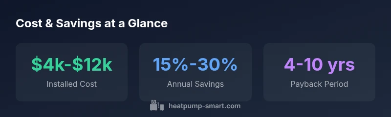 According to Heatpump Smart, a typical installed cost for a mid-sized single-family home ranges from about $4,000 to $12,000, depending on climate, system type, and home efficiency. Expect higher upfront costs for geothermal systems and ductless mini-splits in larger homes. This guide breaks down the factors, includes budgeting ranges, and explains how incentives can affect the total price over the system life.