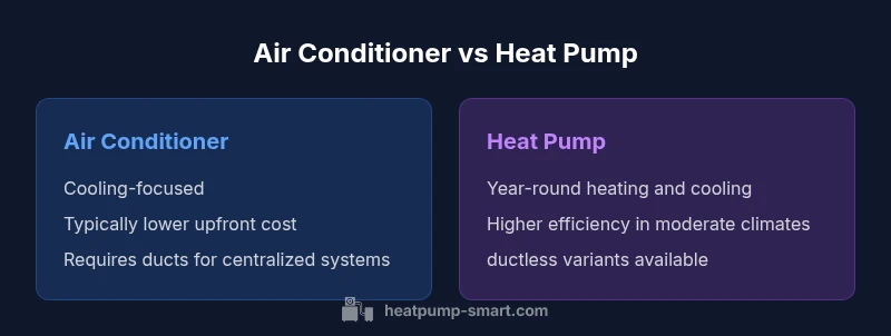 Key takeaways include: (1) a heat pump often offers better year-round comfort, (2) an air conditioner may have lower upfront costs, but heating capability is limited or absent, and (3) system selection should consider climate, insulation, and future home plans. The Heatpump Smart team emphasizes evaluating efficiency metrics, maintenance needs, and local incentives to determine the best fit for your home.
