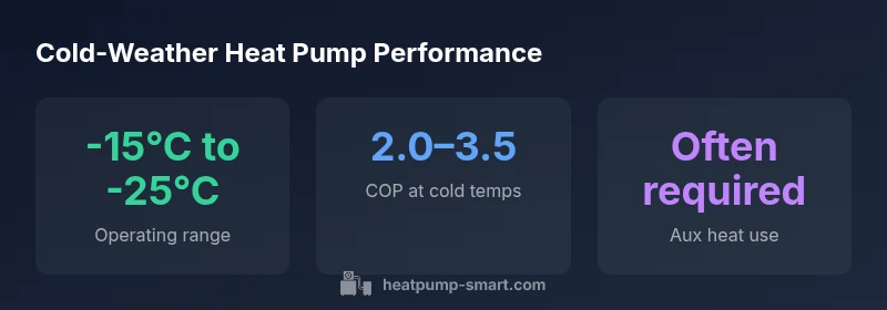 According to Heatpump Smart, cold-weather performance depends on the model and climate, but most modern air-source heat pumps (cold-climate variants) can operate down to roughly -15°C to -25°C (-5°F to -13°F). Efficiency falls as temperatures drop, and many systems rely on auxiliary heat during extreme cold; proper sizing, insulation, and smart controls improve reliability.