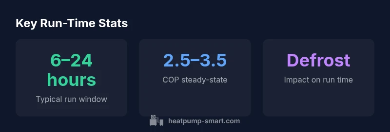 Run time is not a fixed value; it shifts with several interacting factors. The most influential include outdoor temperature and heating load, equipment sizing, and the efficiency of the system. Other important elements are the defrost cycle length, the use of auxiliary heat, and thermostat settings. Specifically: