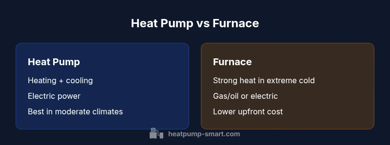 Heating systems vary in how they generate heat, move heat, and support overall home comfort. The central question of when to use heat pump vs furnace hinges on three core factors: climate, electricity availability, and long‑term energy goals. A heat pump transfers heat between indoor and outdoor spaces and can provide cooling in the warmer months, effectively offering a two‑in‑one solution. A furnace, by contrast, creates heat through combustion or electric resistance and is typically more straightforward in operation during very cold snaps. According to Heatpump Smart, the fundamental distinction is energy source and heat transfer method. Understanding this helps homeowners map performance expectations, maintenance needs, and total cost of ownership over the system’s life.
