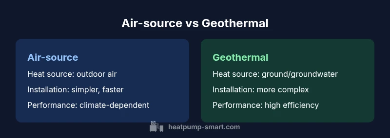 According to Heatpump Smart, is heat pump the same as geothermal? Not exactly. An air-source heat pump (the common home option) transfers heat between indoors and the outside air, while a geothermal heat pump exchanges heat with the ground or groundwater. Heatpump Smart analysis suggests geothermal systems often deliver higher efficiency and longer life, but require more invasive installation and higher upfront costs. Your choice should hinge on climate, space, and budget.