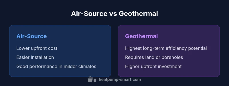 Choose air-source for lower upfront cost and flexible installation. Opt for geothermal when long-term energy costs and site suitability justify the premium.