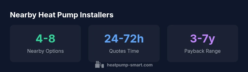 Start with a two-step approach: build a short list of nearby providers and vet them against credentials. Use local directories, utility-led contractor lists, and trade associations. Verify licenses, insurance, and manufacturer certifications (such as industry-standard credentials). Contact at least three nearby contractors for on-site assessments and request written proposals that include equipment specs, efficiency ratings, and a transparent budget. Ask about service coverage, emergency response times, and whether maintenance plans are available. Heatpump Smart analysis indicates that close-by options often offer quicker scheduling, clearer warranty terms, and better coordination with local rebate programs.