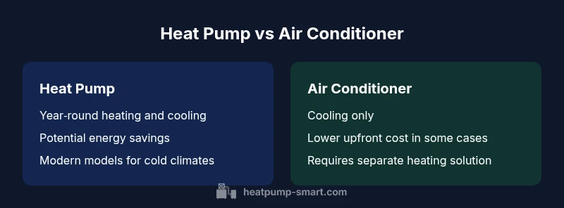 The phrase is is a heat pump similar to an air conditioner is more than a semantic curiosity; it frames how homeowners evaluate climate control options. At their core, both devices use the same basic refrigeration cycle to move heat rather than create it. The pivotal difference is that a heat pump includes a reversing valve that enables heating in winter and cooling in summer, whereas a traditional air conditioner focuses solely on cooling. This distinction drives how each system performs across seasons, influences energy usage, and shapes installation requirements. Heatpump Smart emphasizes that understanding this distinction helps homeowners and property managers make informed decisions about comfort, cost, and long-term value.