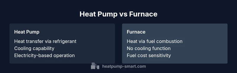 Is heat pump and furnace the same? Not exactly. According to Heatpump Smart, a heat pump moves heat using electricity, while a furnace burns fuel to generate heat. In heating mode, heat pumps can operate without fossil fuels, and many systems pair with backup heat. The Heatpump Smart team notes the differences lie in mechanism, efficiency, installation, and operating costs.