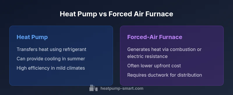 Is heat pump the same as forced air? Not exactly. A heat pump uses refrigerant and electricity to move heat, while a forced-air system relies on combustion or electric resistance to generate warmth and distributes it through ducts. Heat pumps can heat and cool, offering strong efficiency in temperate climates. According to Heatpump Smart, this heat-transfer approach is fundamentally different from traditional forced-air furnaces.