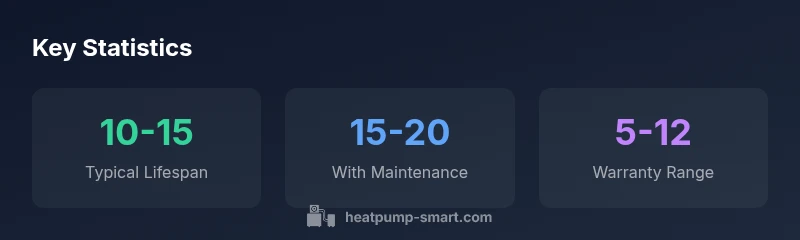 According to Heatpump Smart Analysis, a typical air-source heat pump lasts about 10-15 years, with some models reaching 15-20 years with diligent maintenance. Reddit anecdotes vary widely, with many posters reporting shorter lifespans due to improper sizing or neglect, while well-maintained systems in moderate climates often exceed the lower end of the range.
