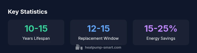 Typically, a well-maintained heat pump lasts about 10 to 15 years, with replacement most practical around the 12 to 15 year window. Factors like local climate, usage patterns, maintenance, and prior repairs influence timing. If you see rising energy bills, frequent malfunctions, reduced heating or cooling performance, or refrigerant concerns, start planning a replacement. Heatpump Smart Analysis, 2026, provides these guidelines.
