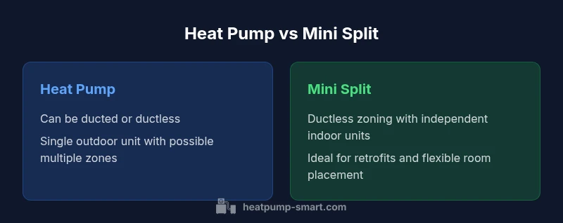 Are heat pumps and mini splits the same? Not exactly. A mini-split is a ductless type of heat pump, typically installed with individual indoor units controlling zones. In contrast, a heat pump refers to the broader technology that transfers heat and can be ducted or ductless. In practice, all mini-splits are heat pumps, but not all heat pumps are mini-splits.