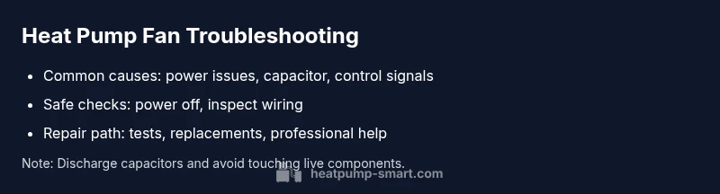 When a heat pump fan stops spinning or runs intermittently, your home loses an important source of warm or cool air. This guide from Heatpump Smart focuses on practical, safe steps you can take to diagnose the problem and restore comfort quickly. We’ll walk through common causes, safe power-down procedures, and how to test components like the capacitor, wiring, and control signals. The goal is to help homeowners, builders, and property managers understand when a fix is simple and when professional help is needed. If you notice unusual smells, buzzing, or hot components, shut off power immediately and seek professional service. The Heatpump Smart team emphasizes safety and a clear diagnostic flow to avoid unnecessary repairs.