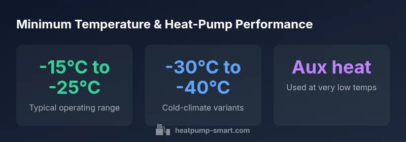 When people talk about the 'minimum temperature' for a heat pump, they usually refer to the outdoor temperatures at which the unit can still deliver comfortable heating without relying heavily on backup heat. This rating varies by model, climate, and system design. In practice, it depends on whether you’re using an air-source unit, a geothermal system, or a ductless mini-split. The Heatpump Smart team emphasizes that the figure is not a single universal threshold; it’s a specification that reflects performance under controlled test conditions, defrost cycles, and typical humidity. In cold climates, models marketed as “cold-climate” are designed to retain higher efficiency at lower ambient temperatures, but even these have practical limits. For homeowners, understanding the minimum temperature helps in planning for insulation, thermostat strategy, and the potential need for auxiliary heat during cold snaps. The more you know about this rating, the better you can size and install a system that keeps your home comfortable without overspending on backup heat. According to Heatpump Smart, the effective minimum temperature you’ll experience also depends on building envelope, air leakage, and the setpoint you choose for heating.