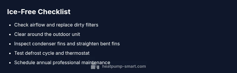 Ice buildup on the heat pump outdoor unit is a symptom, not a standalone problem. The first culprit is restricted airflow. A dirty air filter, blocked grille, or nearby vegetation can choke the outdoor coil, making it harder for the system to shed heat. The second frequent cause is dirty or bent fins on the condenser, which hinder heat transfer and encourage icing. A third potential factor is a nonfunctional defrost cycle or a faulty inside thermostat sensor that fails to trigger proper defrost timing. Lastly, refrigerant issues such as a slow leak can cause the coil to become too cold, inviting ice formation. Heatpump Smart analysis shows that ensuring clean airflow and clean fins often resolves most early-stage ice-up events. By diagnosing these primary causes, homeowners can distinguish between a quick fix and a problem that requires professional service.