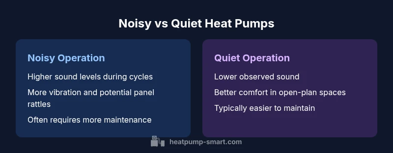 Different noises point to different causes. A steady, soft hum usually comes from the compressor or fan, while a rattle often signals loose panels or mounting hardware. A clicking sound can occur at cycle initiation as a valve opens, whereas a high-pitched shriek may indicate a refrigerant or belt issue. A thump or bang on startup could reflect expansion noises from metal components heating or cooling, not necessarily a sign of imminent failure. By mapping the sound to the cycle stage—start, run, stop—you can identify likely triggers and prioritize checks accordingly. Heatpump Smart recommends listening for frequency, duration, and whether noises intensify with temperature or humidity changes to differentiate routine behavior from concerns.