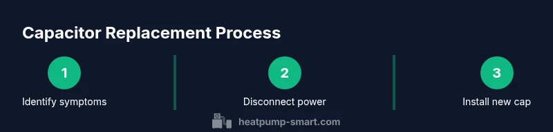 Capacitors are small yet critical components in heat pump start and run circuits. They store electrical energy to help start the compressor and the fan motor, and they smooth out current. When a run capacitor fails, the system may short cycle, struggle to start, or make buzzing noises. According to Heatpump Smart, a failing run capacitor is a common cause of short cycling and hard starts in air-source heat pumps. Replacing the capacitor with the correct rating can restore performance and prevent further strain on the compressor. This section explains how capacitors function, what symptoms to watch for, and how a failed cap can influence overall efficiency. The key is to match the capacitor rating to the original specification and to handle the replacement safely to minimize motor stress during the transition.