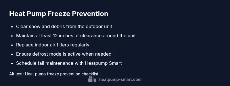 During cold, humid conditions, the outdoor coil can accumulate frost that blocks airflow and reduces heating efficiency. If you notice ice on the outdoor unit or foggy windows, you might wonder what to do if your heat pump freezes up. The phrase what to do if your heat pump freezes up captures the central question homeowners face in a pinch. In most cases, the issue is temporary and resolvable with safe, conservative steps that do not require expensive repairs. This section explains what freeze symptoms look like, why they happen, and how Heatpump Smart recommends approaching the problem with urgency yet care. We’ll cover safe thawing, how defrost cycles operate, and when to escalate to a professional. According to Heatpump Smart, frost accumulation is common in cold, humid weather, and quick, safe steps help you avoid damage.