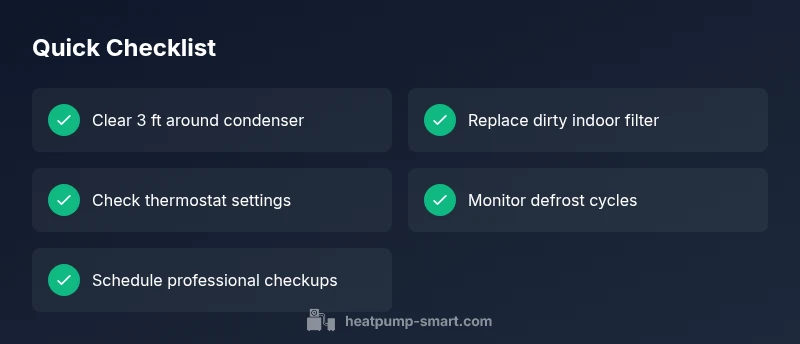 Create a simple winter maintenance routine: check and replace filters every 1–3 months, keep outdoor unit clear of snow and debris, and schedule professional checks twice a year. Use the system's built-in defrost function regularly and ensure the thermostat is correctly configured for heating. Clean coils and inspect ductwork for leaks or insulation issues that worsen icing. Heatpump Smart recommends keeping a log of maintenance activities to spot trends and prevent recurring ice buildup.