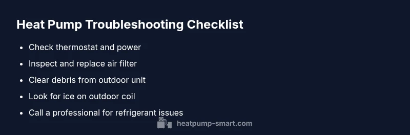 According to Heatpump Smart, when a heat pump fails to deliver warm air, the issue is rarely mysterious. Most often the culprit is either a simple setting, a clogged filter, or airflow obstruction. Understanding how your system should behave—the distinction between Heat mode, Auto, and Emergency Heat—helps you diagnose quickly. In this guide, we’ll walk through the most common causes, safe checks you can perform yourself, and when to call a professional. For homeowners, builders, and property managers, a disciplined approach saves time and reduces energy waste. By addressing these issues early, you maintain comfort and keep operating costs in check.