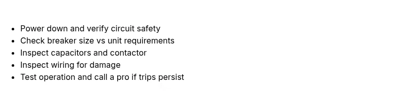 A heat pump trips a breaker most often because of an electrical overload during startup or a failing component such as a capacitor or relay. Quick fix steps: cut power at the main panel, reset the breaker, and check for overload. If it trips again, call a licensed HVAC tech.